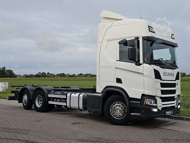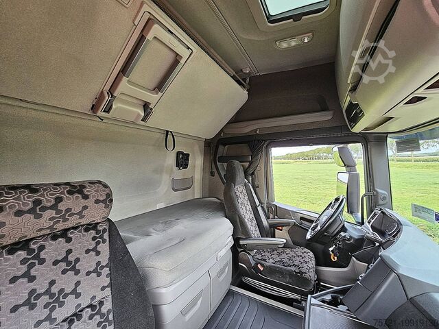 Number of axles: 3, Configuration: 6x2, Curb weight: 10,250 kg, Gross weight: 26,500 kg, Total fuel tank capacity: 1,100 liters, Second diesel tank, Trailer coupling, King pin diameter: 40 DIN, Fifth wheel: Fixed, Number of differential locks: 1, Suspension type: Air suspension, Cab type: Highline, Cruise control, Tachograph (control unit), Digital tachograph, Air conditioning, Stationary air conditioning, Auxiliary heater, Electric windows, Electric mirrors, Radio/cassette, Color: White, Heated mirrors, Lighting type: LED lamp, Speed limiter, Lane departure warning system, Climate control, Heated seats, Bluetooth, Engine power: 331 kW (444 HP), Fuel: Diesel, Euro: 6, Transmission type: Opti-cruise, Make: Scania, Speed limiter, Gears: 12, Auxiliary brake system, Retarder brand: Scania, Power steering, ABS, ASR, Starter battery, Rotation direction: 1x20, System length: 80 cm, System type: ., Central locking, Seating configuration: 1+1, Seat upholstery: Fabric, Seat adjustment: Manual