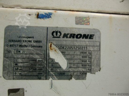 Фургон-полуприцеп KRONE 3-ACHS KOFFERAUFLIEGER SDK 27 ZURRSCHIENEN