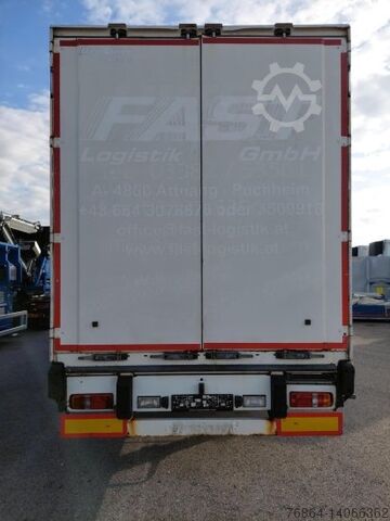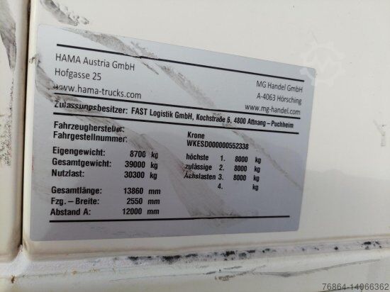 | Krone SDK27 box trailer | spare wheel holder, tool box | Mercedes Benz axles with disc brakes | lift axle | 385/65R22.5 tires | rear support | Austrian vehicle Subject to errors, omissions and prior sale.