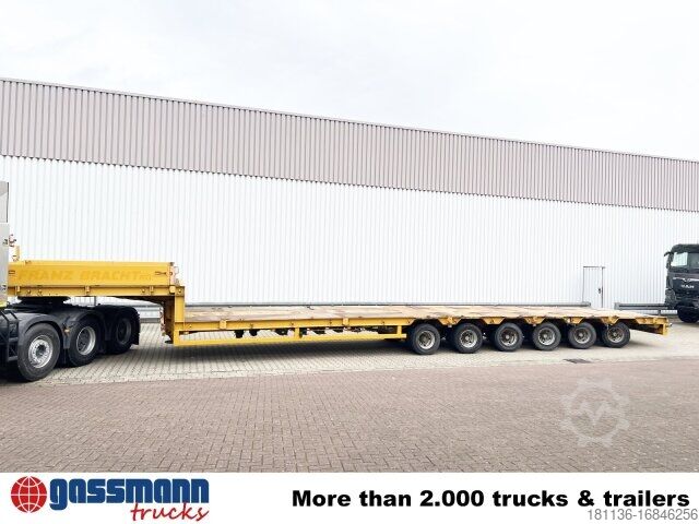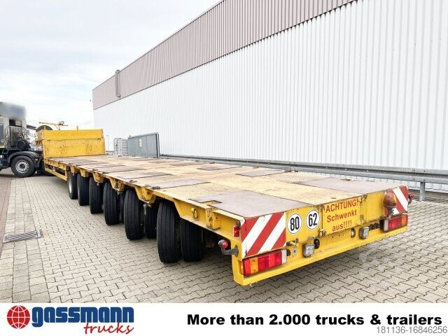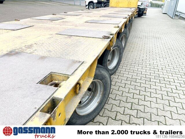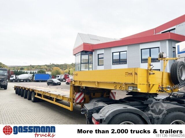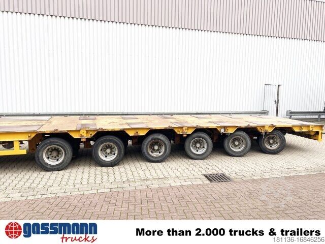 Body: 6-axle low-loader semi-trailer with 5 steering axles and 24V hydraulic pump. BPW axles, drum brakes, all tires approx. 70%, total length 17500mm, 3.5 kingpins, interchangeable. ACCESSORIES WITHOUT WARRANTY, subject to alterations, prior sale and errors excepted!