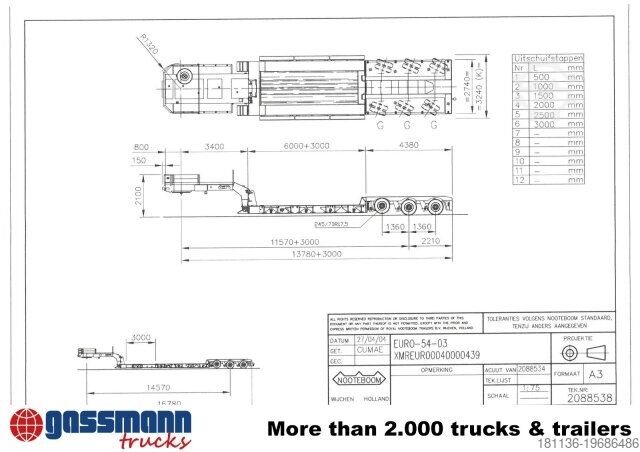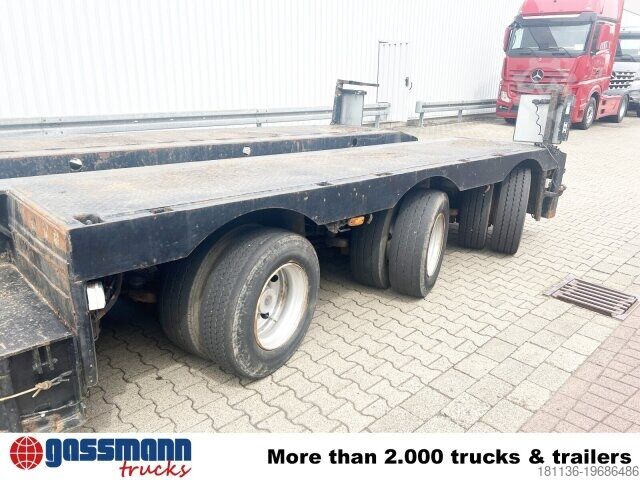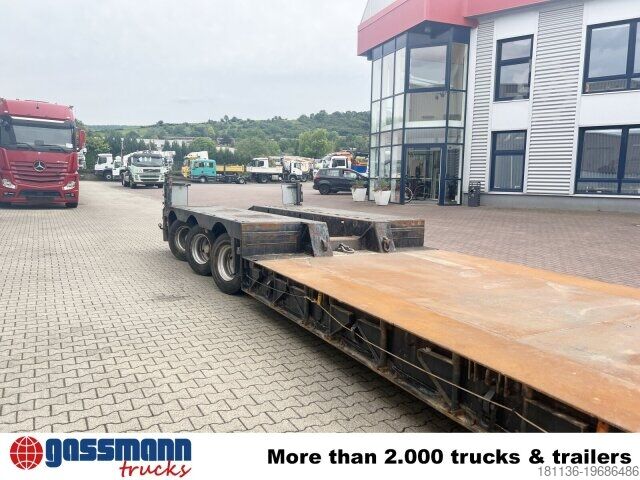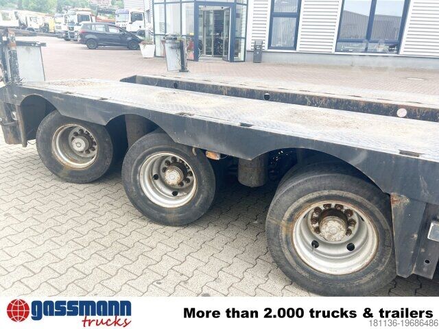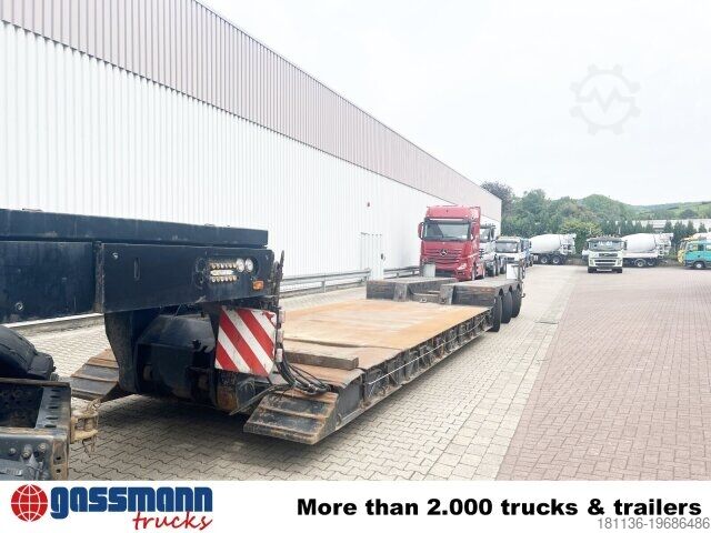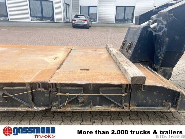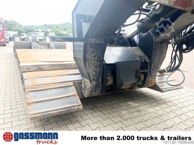 Body: Extendable to a total length of 17.58 m, maximum 9 m in the low bed, extendable to 3.24 m width. Hydraulic steering can be controlled via cable remote control. Low-loader with detachable gooseneck and 3 hydraulically forced-steered axles, 1st axle liftable. ACCESSORY INFORMATION WITHOUT GUARANTEE, subject to changes, prior sale and errors!