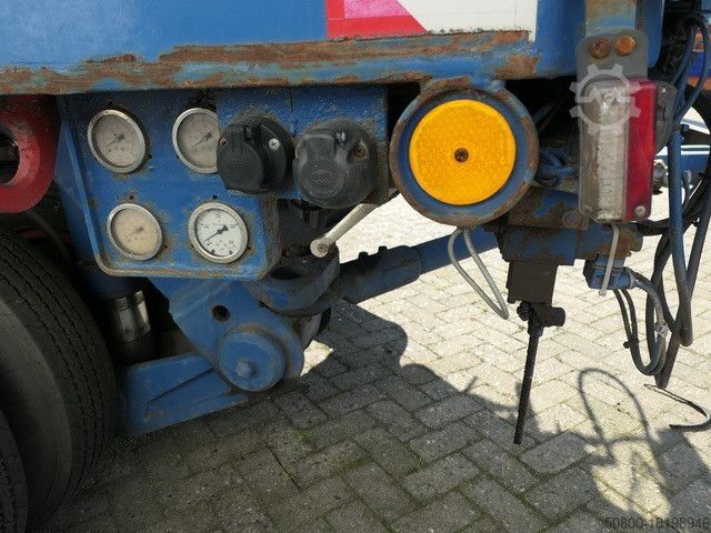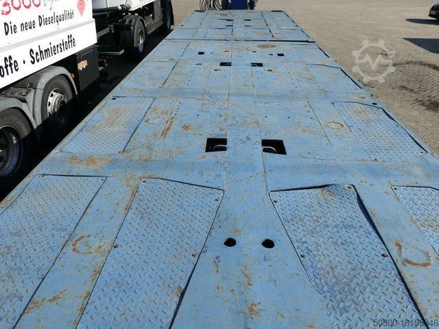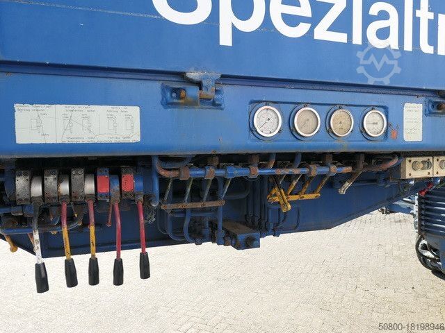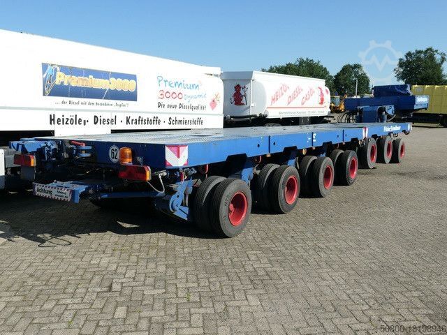 Тяжелый полуприцеп-платформа SCHEUERLE, комбинация «гусиная шея» + 3-осный номер шасси: 6573, плюс K 60/4, номер шасси: 6576, «гусиная шея» с гидравлической регулировкой (ДxШxВ) 3470x2445x300 мм, отдельный дизельный двигатель HATZ, гидравлический подъем и опускание груза площадь (ДхБ) 11300x2470 мм, 8 шин на ось, состояние шин очень хорошее, управляемые маятниковые оси, грузоподъемность - нагрузки на ось технически возможны при пониженных скоростях, общий вес ок. или 147 т., состояние хорошее, на автомобиле может быть наклеена реклама и/или надпись