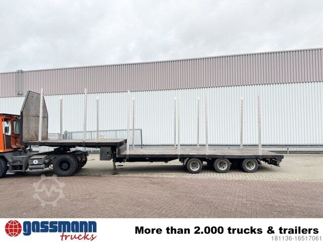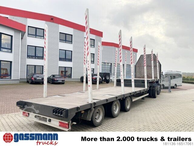 Structure: 3-axle flatbed trailer with 8x 11t Ecco aluminum stanchions & 4x 9t Ecco aluminum stanchions 3x 8t BPW axles, drum brakes!