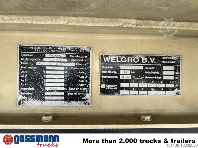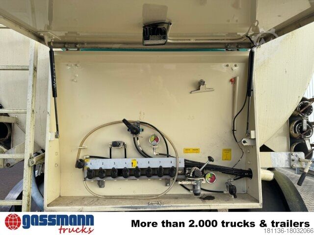 Vehicle location: Bovenden, 2-axle, SAF axles, air-suspended, last axle with forced steering, ABS (anti-lock braking system), walkway, U-protection, lateral aluminum wheel guard, supports, storage box, rear outlet