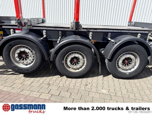 Vehicle location: Bovenden, 3-axle, SAF axles, air suspension, 1st axle liftable, last axle with self-steering, lifting and lowering, ABS (anti-lock braking system), extendable, lashing eyes, underbody protection, side aluminum underbody protection, supports, storage box, stanchions.