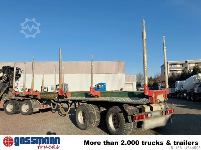 Body: 2-axle timber transport trailer with 5x stanchion stools, extendable from 10.75m to 14.35m 2x 10t BPW axles, drum brakes, 1st axle liftable, 2nd axle hydraulically forced steered. ACCESSORIES WITHOUT WARRANTY, subject to alterations, prior sale and errors excepted!