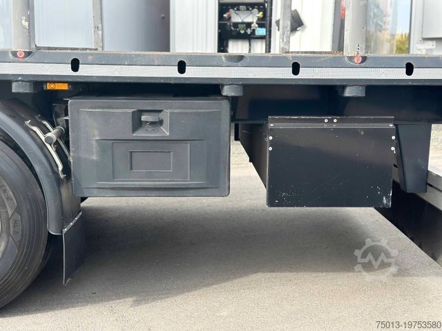 12 stake pockets welded into the outer frame on each side, 2° incline, as a parking option directly behind the front wall 8 stake pockets across the direction of travel, in the middle in the longitudinal direction 8 stake pockets distributed over the entire length welded