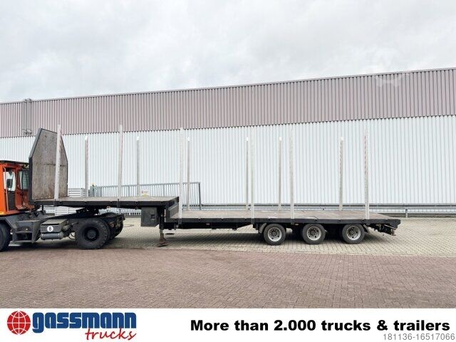 Structure: 3-axle flatbed trailer with 8x 11t Ecco aluminum stanchions & 4x 9t Ecco aluminum stanchions 3x 8t BPW axles, drum brakes!