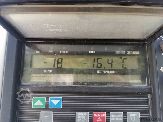 Number of axles: 3, Unladen weight: 9,190 kg, Gross weight: 42,000 kg, Chassis type: Full chassis, Chassis material: Steel, Kingpin size: 2 inch, Suspension type: Full air suspension, ABS, EBS, Body construction year: 2019, Refrigeration unit manufacturer: Carrier, Refrigeration unit model: Vector 1550, Cooling unit: Diesel/electric, Operating hours / electric: 322, Operating hours / diesel: 8,829, Wall thickness: 60 mm, Axle type: SAF, Tail lift, Tail lift design: fold-under tail lift, Tail lift capacity: 2,000 kg, Tail lift manufacturer: D'Hollandia, Tail lift material: steel and aluminium, Tail lift size: 170x240, Folding lift, Carrier 1550 D+E, SAF, Spare wheel