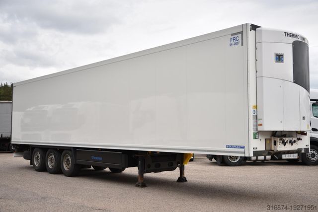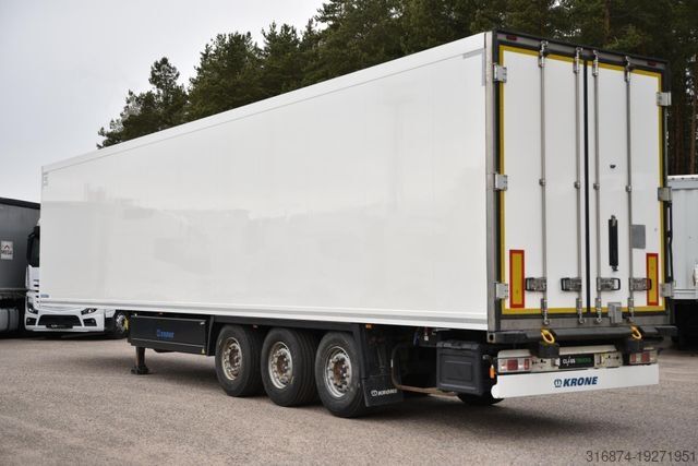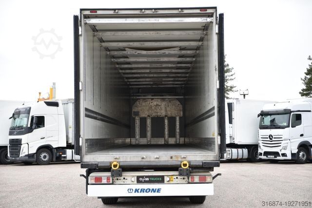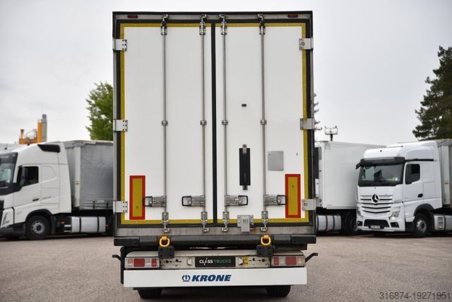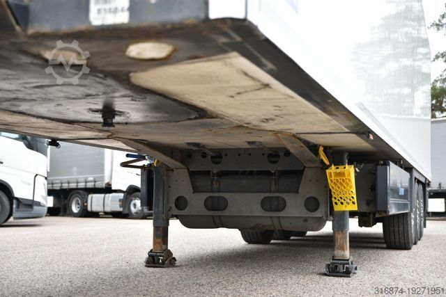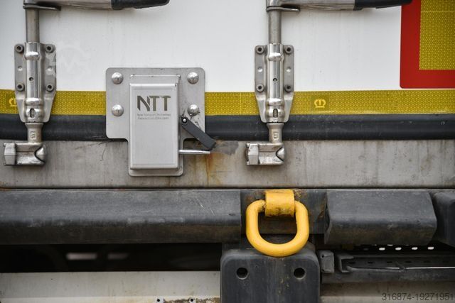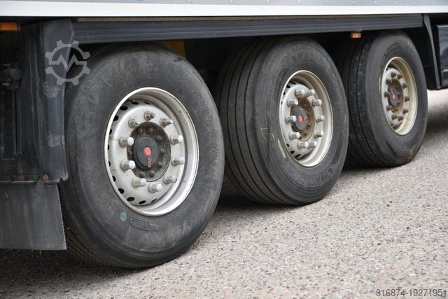 ID: 3871-816845 All our vehicles and the latest offers - Technical specifications Cooling unit - THERMO KING SLXi 300, diesel and electrical Axles producer - SAF axles Full air suspension Insulated double rear doors with 4 steel lockrods FP insulated sidewall, 60 mm Tool box, PVC, left side behind the axles, dimensions approx. 650x490x450 mm Fuel tank plastic, for approximately 240 ltr., tank opening on both sides, cover with cylinder lock EBS-braking system, 2S/2M, 2 sensors on 1 axle 1 pair(s) of load lock rails, horizontally, inserted into side walls Disc brakes 430 mm incl. 2 temperature sensor Ventilation flap, at the front wall, at top of left side, Ventilation flap, small, at rear, right si Lift axle control for 1st axle Low noise aluminium floor, suitable for PIEK floor, tested according to CSC/EN 283, reinforced at re Spare wheel holder as fixed basket for one spare wheel, right side, behind axles, 2nd spare wheel ho 1 spare wheel (6+1) tyres - 385/65R22.5 12 sets of double deck rails, type Airline, inserted into side walls, full length 1.600 mm from the Loading capacity 33 / 66 euro paletts Internal Length/width/heigth - 1331cm/246cm/265cm Gross vehicle weight: 39.000 kg Own weight - 8 813 kg 3 axles Pallet box for 24 Euro-pallets