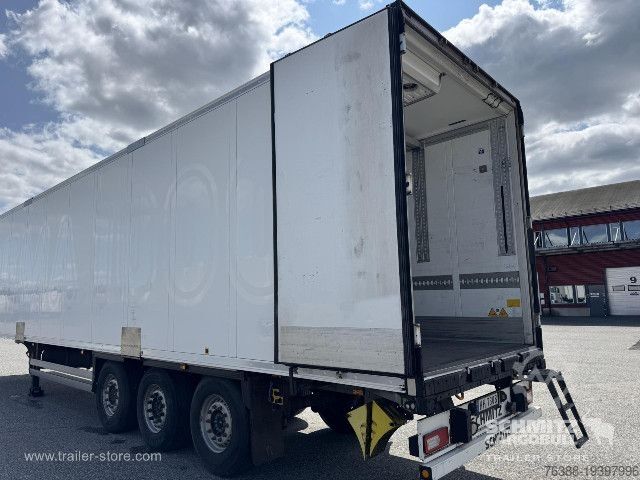 Tomvekt: 8993kg, tillatt totalvekt: 42000kg, Lasterom (L B H): 13.403 mm x 2.490 mm x 2.700 mmdekkdimensjon: 385/65 R22.5, Lasteromsvolum: 90 m³, Foraksel: , 2. aksel: , 3. aksel: , Luftfjæring, Underkjøringshinder, Elektronisk bremsesystem EBS, Tilkoblingsplugg 1x15 og 2x7 pin, Anti-spray, 410 external / 270 internal height18t King pin810 wheelbaseSchmitz Cooling unit Diesel hrs 13.411MOT/PKK 2.5.26Some wear and tear,