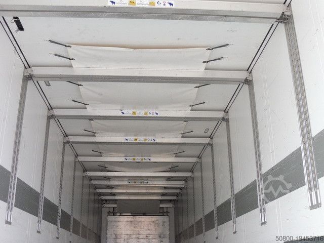 Рефрижераторный кузов, двухъярусная загрузка, 1 анкерная рейка для запорных штанг с каждой стороны, алюминиевый рифленый пол, холодильный агрегат THERMO KING, тип: SLXi-400, функция обогрева и охлаждения, дизель-электрический, ABS, EBS, ось(и) SCB ROTOS, алюминиевые диски, дисковая тормозная система, пневматическая подвеска с подъемно-опускным устройством, подъемная ось, опорное шасси, транспортное средство может быть покрыто рекламой и/или этикеткой.
