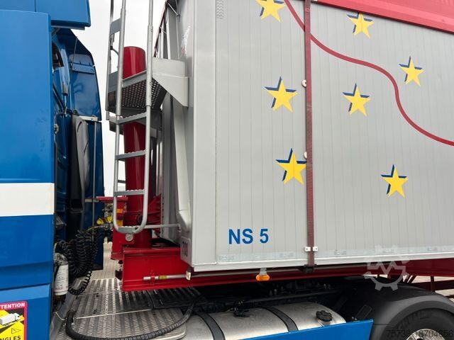 3-axle, standing platform, air suspension, BPW axles, disc brakes, aluminum rims, grain pusher, ABS.