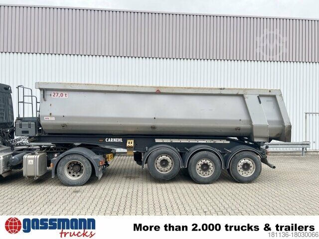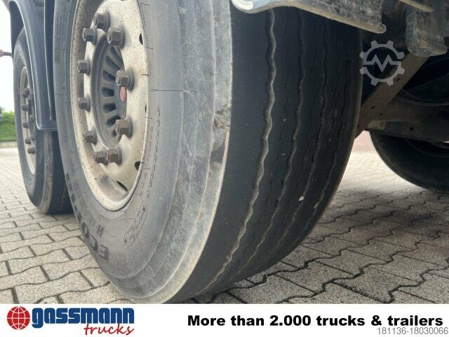 Vehicle location: Bovenden, steel body, 3-axle, SAF axles, air-suspended, 1st axle liftable, lifting+lowering, ABS (anti-lock braking system), roller tarpaulin, catwalk, flap, U-protection, chute