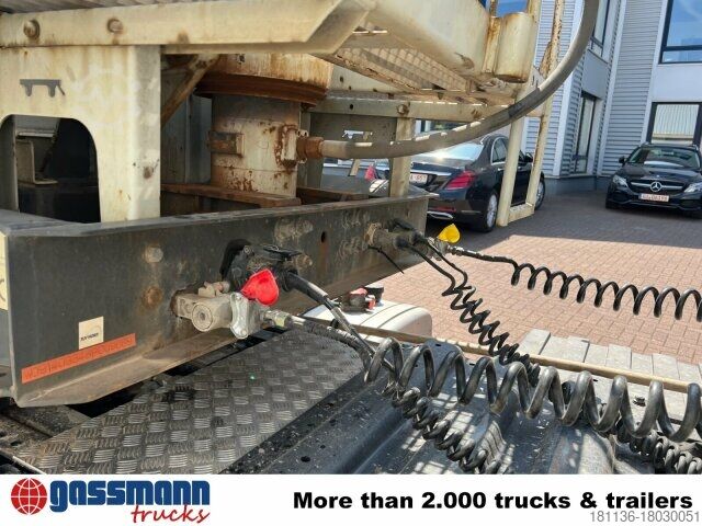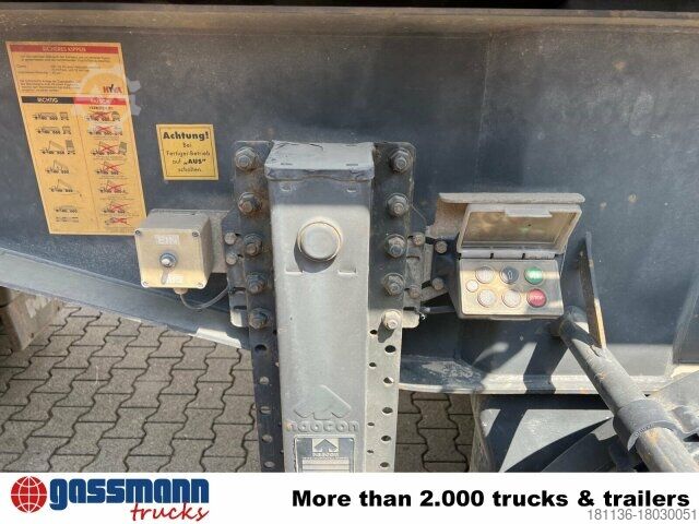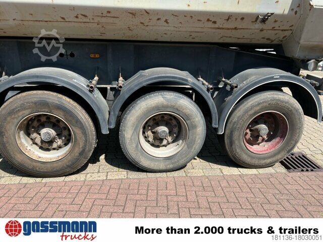 Vehicle location: Bovenden, steel body, 3-axle, BPW axles, air-suspended, 1st axle liftable, lifting+lowering, ABS (anti-lock braking system), roller tarpaulin, catwalk, flap, U-protection, chute, supports