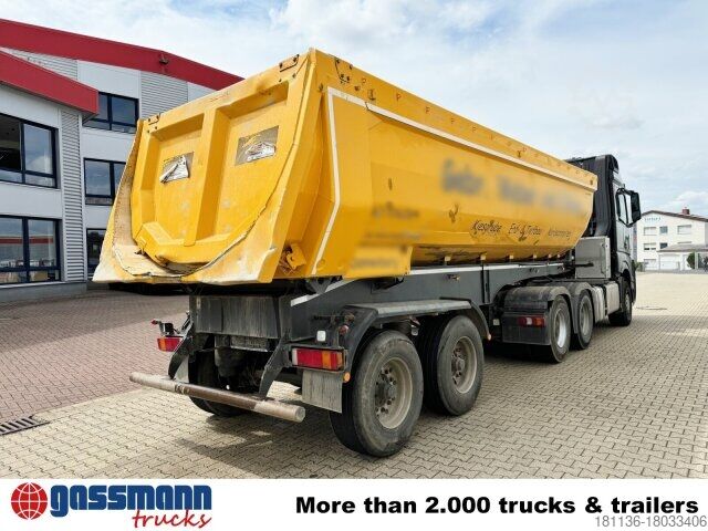 Body: Aluminum round body approx. 27m³ 2x 9t BPW axles, disc brakes, floor pan made of 7mm aluminum sheet, wear plate made of 7mm aluminum on the floor, with aluminum air tank, 4,600 kg empty weight, ALCOA aluminum wheels, saddle height 1,390mm / 1,400mm, also suitable for 6x6! ACCESSORY INFORMATION WITHOUT WARRANTY, subject to alterations, prior sale and errors excepted!