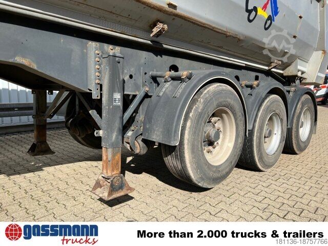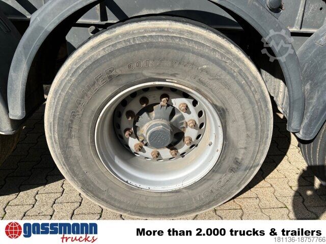 Vehicle location: Bovenden, steel body, 3-axle, BPW axles, air-suspended, 1st axle liftable, lifting+lowering, ABS (anti-lock braking system), roller tarpaulin, catwalk, flap, U-protection, chute, supports