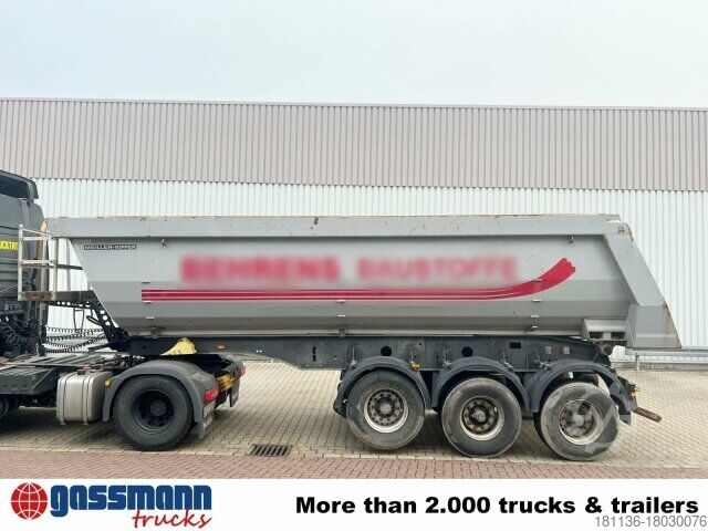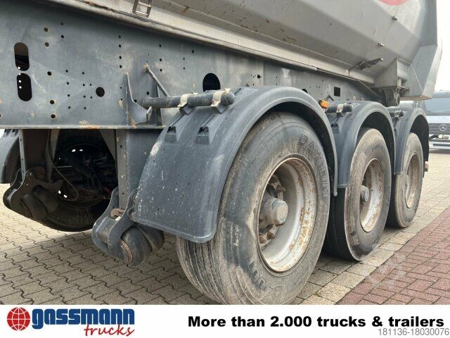 Vehicle location: Bovenden, steel body, 3-axle, BPW axles, air-suspended, 1st axle liftable, lifting+lowering, ABS (anti-lock braking system), roller tarpaulin, catwalk, flap, U-protection, chute