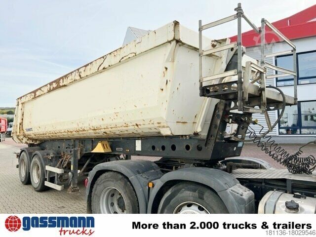 Vehicle location: Bovenden, steel body, 2-axle, SAF axles, air-suspended, 1st axle liftable, lifting+lowering, ABS (anti-lock braking system), catwalk, flap, folding U-protection, aluminum side bumpers