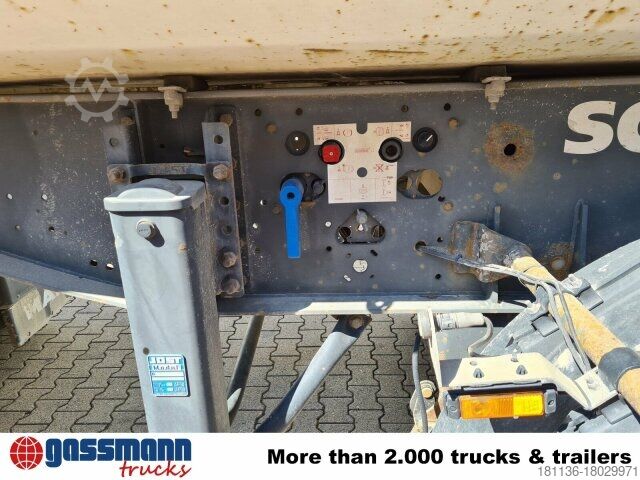 Vehicle location: in feed / in transit, steel superstructure, 3-axle, SAF axles, air-sprung, 1st axle liftable, lifting+lowering, ABS (anti-lock braking system), roller tarpaulin, catwalk, flap, chute, supports
