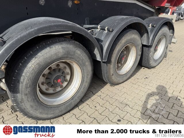 Vehicle location: in transit. Steel body, 3 axles, SAF axles, air suspension, first axle liftable, ABS (Anti-lock Braking System), catwalk, tailgate, foldable underrun protection, support legs. Body: Hardox body approx. 24/26m³, 10 units available! 3x 9t SAF axles, drum brakes, 5mm Hardox floor, 4mm side walls, tires 50-80%. All information subject to change, as the vehicle is in transit! ACCESSORY INFORMATION WITHOUT GUARANTEE, changes, prior sale, and errors excepted!