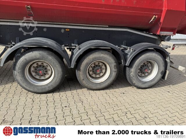 Vehicle location: in transit. Steel body, 3 axles, SAF axles, air suspension, first axle liftable, ABS (Anti-lock Braking System), catwalk, tailgate, foldable underrun protection, support legs. Body: Hardox body approx. 24/26m³, 10 units available! 3x 9t SAF axles, drum brakes, 5mm Hardox floor, 4mm side walls, tires 50-80%. All information subject to change, as the vehicle is in transit! ACCESSORY INFORMATION WITHOUT GUARANTEE, changes, prior sale, and errors excepted!
