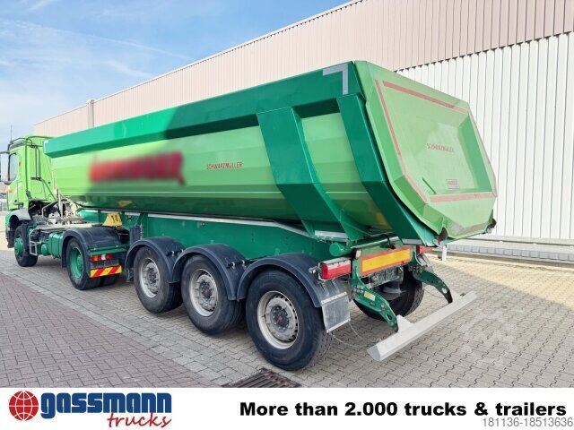 Construction: Hardox trough approx. 25m³ 3x 9t SAF axles, disc brakes, 6mm Hardox floor, 4mm walls, rear view camera, SWIT Schwarzmüller Intelligent Telematics basic package, 1 and 2 axle liftable, attached swing tailgate, also available with a suitable tractor unit (17521) for an additional charge! ACCESSORIES INFORMATION WITHOUT GUARANTEE, subject to changes, prior sale and errors!