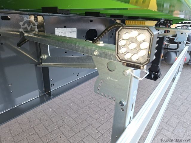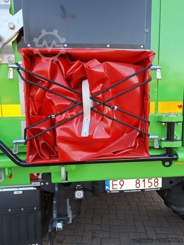 * PVC roll-up tarpaulin 680 g/m² with quick-release fastener and aluminum winding tube. Center tube welded into the tarpaulin.