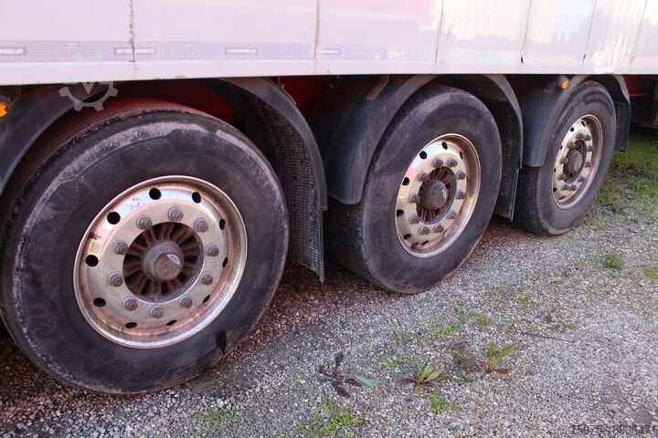 sem piano mobile schwarzmuller, 90m3, 3 axles with BPW disc with 1st liftable, abs, aluminium van with rear doors, 21 slatted mobile floor, internal bulkhead, roof with cover and pvc tarpaulin, aluminium frame, closed pallet rack for 12 units, year 2017, good condition, INTERDRIVE SRL-PARMA DEALER