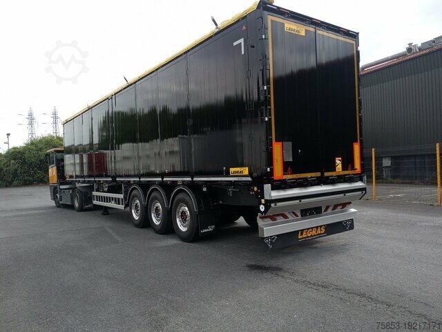 Moving floor with side doors Stock vehicle immediately available Hire purchase without down payment Monthly hire purchase rate € 1099,- Term 84 months after expiry - purchase for RW or return or new vehicle Full service rental with later purchase possible Moving floor trailer Hydraulic connections on front wall Working platform with access Extendable rear ladder Moving wall for complete emptying Front wall made of aluminum profiles and solid upper frame profile Side walls made of aluminum hollow profiles 35*268 ALU double-wing door Moving floor system LEGRAS Floor type 10 PVC roll-up tarpaulin with 3 removable cross bows 4 tensioning belts with lashing winches on the outer frame for tarpaulin attachment Longitudinal belts under the tarpaulin E-bike holder Basket version for E-bike Brake disc 430mm E-sockets 2*7 +1*15 pole Foldable rear light cover Rubber rear apron on the U-protection ALU rims and much more. Ask about our affordable hire-purchase or leasing offers. Our general terms and conditions apply. Subject to prior sale. Prices are subject to 19% VAT. Financial services are subject to a positive credit check and are only available to German businesses. Information is also available at o. SAF axles, aluminum floor, container doors, toolbox, available for rent, disc brakes, lift axle, side door, partition wall, wing doors, rental possible, alloy wheels, new MOT/AU, other equipment available.