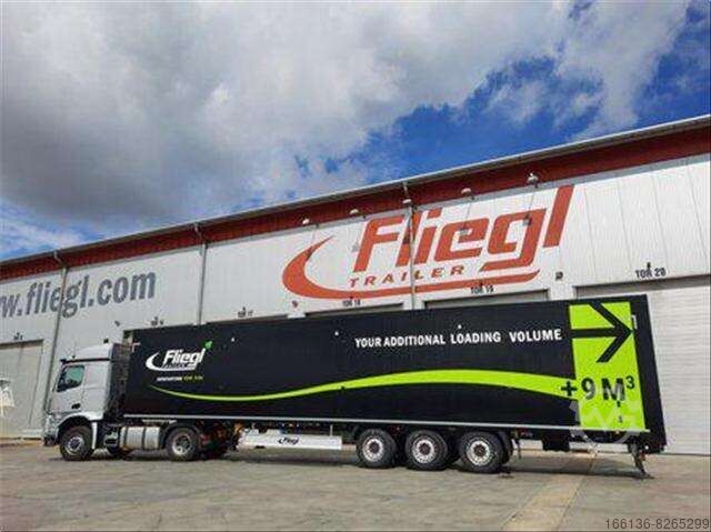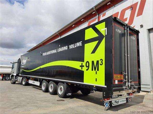 Sliding wall for better emptying of the load, with reinforced tarpaulin flaps at the bottom.