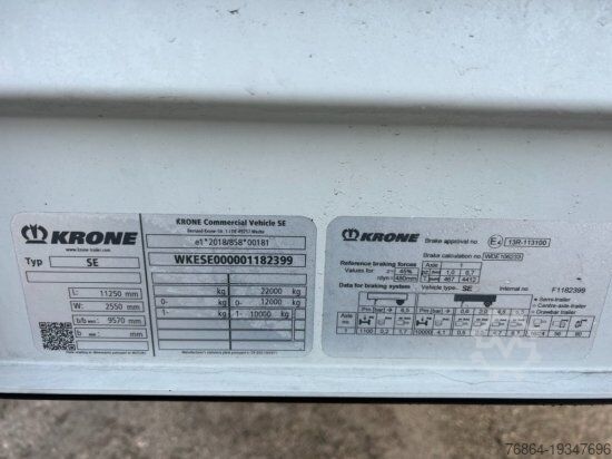 | Krone City Liner Profi/1-axle curtainsider semi-trailer with forced steering | toolbox | spare wheel holder, Edscha roof | SAF axles with disc brakes | tare weight: 5,787 kg, payload: 14,213 kg | tires: 275/70R22.5 | tail lift 2000kg | length of loading area: 11.25m | errors excepted, subject to input and prior sale.