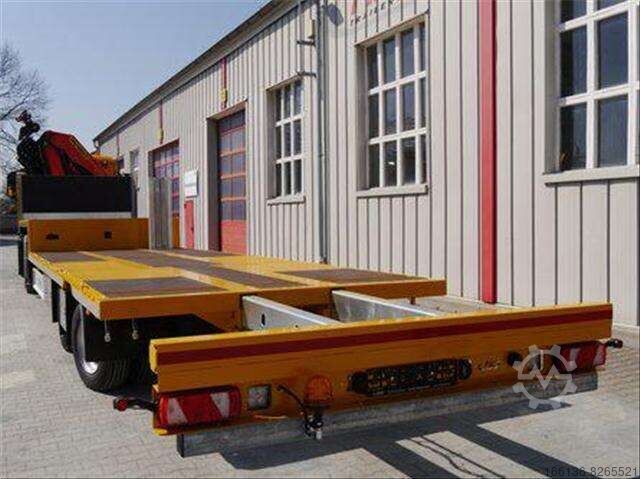 Mechanical rear extension with hand crank, can be extended by approx. 1,500 mm, can be locked every 500 mm, with support beam, can be loaded with 2000 kg over the entire width at the load center of gravity at approx. 500 mm, can be loaded with 1000 kg over the entire width at 1000 mm and can be loaded with 500 kg over the entire width at 1500 mm, incl. extendable underride guard with lighting,