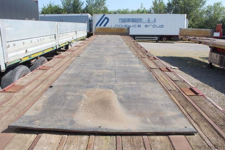 sem acerbi, open platform with 3 axles with 1st soill + 3rd steering, air suspension, abs, side uprights in round tubular, double speed feet, tool box, wood holder, side winches for fastening with straps, 60cm front head, platform in wooden strips, year 1999, inspected until 07.31.2025 - INTERDRIVE SRL DEALER - PARMA