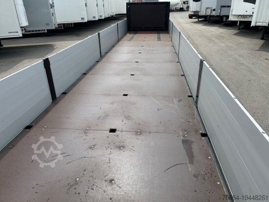 | Krone construction material trailer | Toolbox | Pallet box | Spare wheel holder | Krone axles with disc brakes | 6020 kg unladen weight | Tyres: 385/65 R22.5 | Loading area: L: 14 m W: 2.48 m H: 0.73 m Sideboard height: 1.6 m | Subject to errors, input mistakes and prior sale.