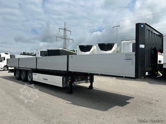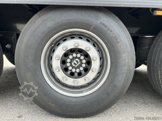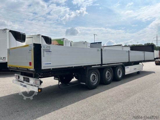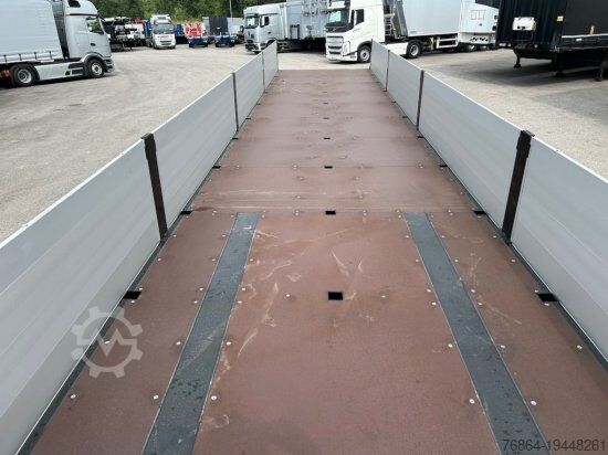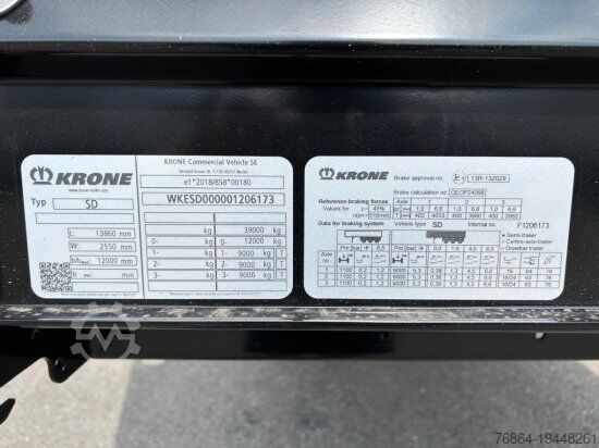 | Krone building materials semi-trailer | Toolbox | Pallet box | Spare wheel holder | Krone axles with disc brakes | Unladen weight: 6020 kg | Tires: 385/65 R22.5 | Loading area: L: 14m W: 2.48m Side board height: 0.73m Front wall: 1.6m | Subject to errors, input mistakes and prior sale.
