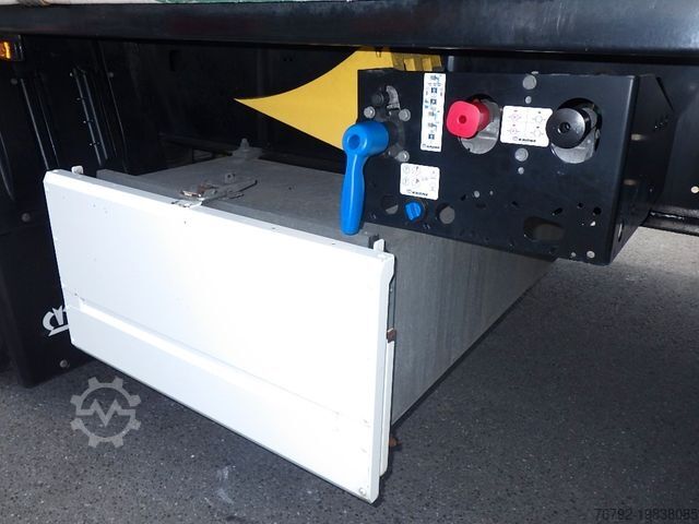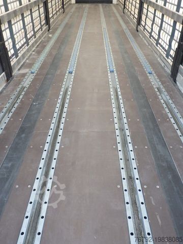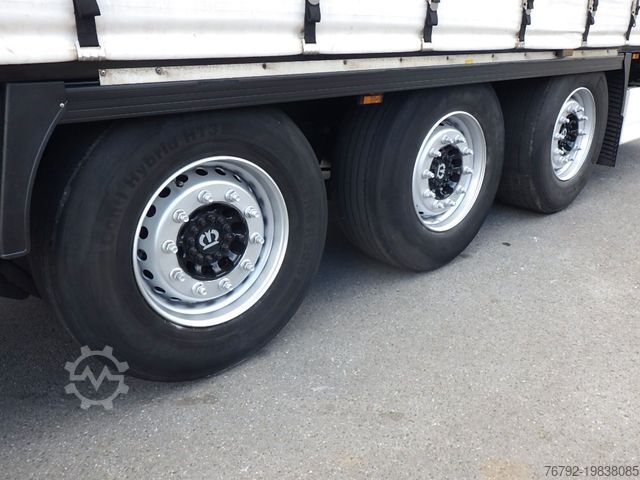 3-axle tautliner flatbed semi-trailer “Paper-Liner” with Joloda rails for transporting paper rolls, featuring 4 longitudinal steel loading rails for pallet rollers with integrated hole pattern for locking chocks, 16 spindle chocks for hole rails, load securing certificate according to DIN EN 12642 Code XL, and beverage certificate VDI 2700 Part 12. Internal loading dimensions: 13,620 x 2,480 x 2,700 mm. Edscha sliding roof, 3 pairs of side middle stanchions, laterally adjustable, inner tarpaulin with wire mesh as theft protection, 4 sets of lightweight aluminum insert slats, Multilock external frame with universal load securing options every 100 mm. Krone Gigant axles, 3 x 9,000 kg, air-suspended with lift and lowering function, ABS, 1st and 3rd axle liftable, disc brakes with EBS, Wabco EBS system 2S/2M with stability program. Rear corners reinforced with trapezoidal steel profile, extended transverse steel ram profile in the rear frame, 2 additional rubber buffers centrally at the main beam, side underrun protection, enclosed toolbox behind the axle aggregate, full LED multifunction rear lights and 2 additional LED reversing lights. Tires: 385/65 R 22.5. Technical gross weight: 39,000 kg. Unladen weight: 6,621 kg. 1st owner. Tarpaulin color: RAL 9010 Pure White. Very good overall condition. ORIGINAL mileage approx. 15,420 km (verifiable). German vehicle with German documents. Sale to business customers only! All information without guarantee. Subject to errors and prior sale!