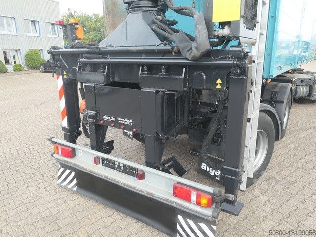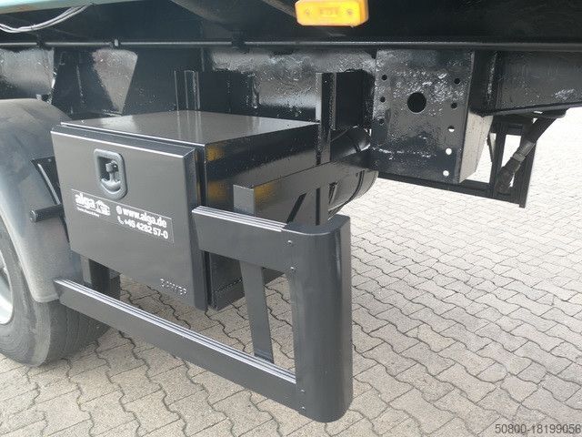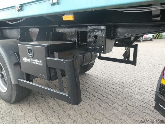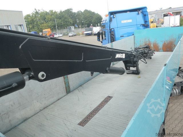 Тип крана MKG: HLK 250 л.с., высокое сиденье, 2-точечная задняя опора, алюминиевые боковые стенки, 2 делимые по 950 мм, пол из алюминиевой шахматной плиты, 15 крепежных проушин с каждой стороны, внешняя рама Multi Lock, ABS, пневматическая подвеска с устройством подъема и опускания , ось(и) BPW , 2-я ось(и) управляемая, барабанная тормозная система, вещевой ящик, автомобиль может быть покрыт рекламой и/или быть помеченным