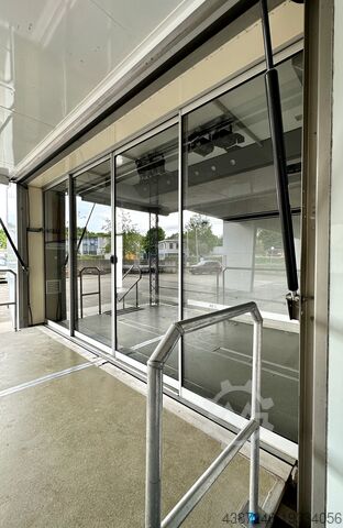 Зона кухни отделена от рекламной зоны стеклянной дверью. В задней части рекламной зоны есть складское помещение, которое можно закрыть