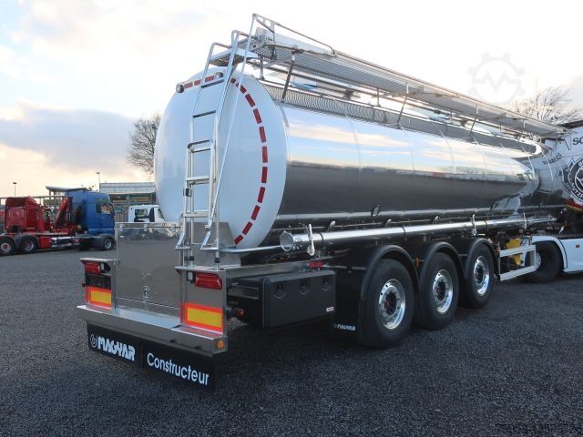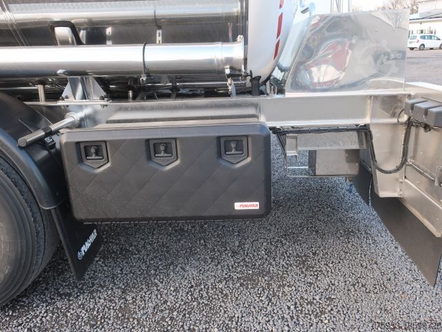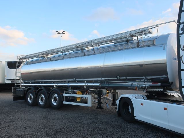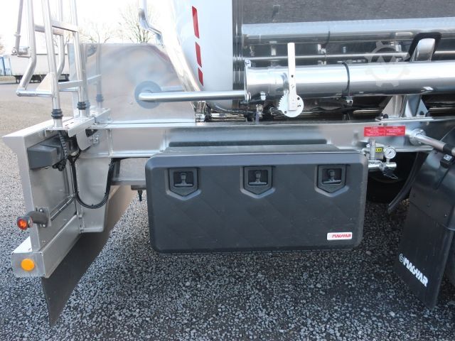 ABS, axle manufacturer SAF, top filling, pressure tank, air lift suspension, lifting and lowering, lift axle 1st axle, tank capacity 32000, V2A tank insulated, tool box, chamber sizes 11,500 / 7,000 / 13,500 liters, manhole 500 mm, overflow box with insulated lids, outlet DN100 insulated 7 heated, walkway with handrail, ladder, 2 x hose pipes, 2 external heating channels, 3 x analog thermometers, 2 tool boxes, stainless steel sterile box, Wabco Smartboard, tire pressure monitoring, operating pressure 2.0 bar, tank and outlets completely insulated, immediately available