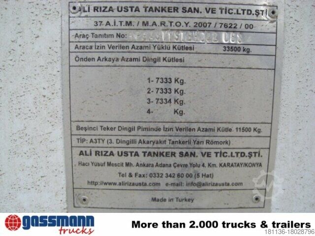 Body: for diesel/oil, 34.560ltr. ( 4 chambers ) with lower belt frame, 3 x 9.600ltr. and 1 x 5.760ltr., steel tank ( ST52 ) 5mm, also possible as 3-axle trailer for 4.500,- EUR surcharge, without pump and pipes these for surcharge ! Delivery time approx. 8 weeks! Only suitable for EXPORT outside the EU.