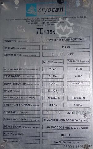 Криогенный газовый полуприцеп для СПГ (сжиженного метана).