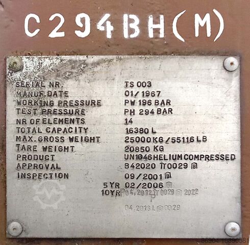 Газ, сжатый гелий, водород, 196 бар полуприцеп