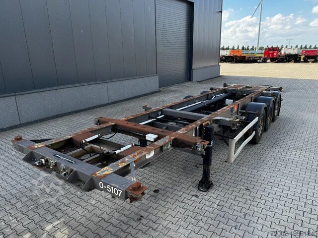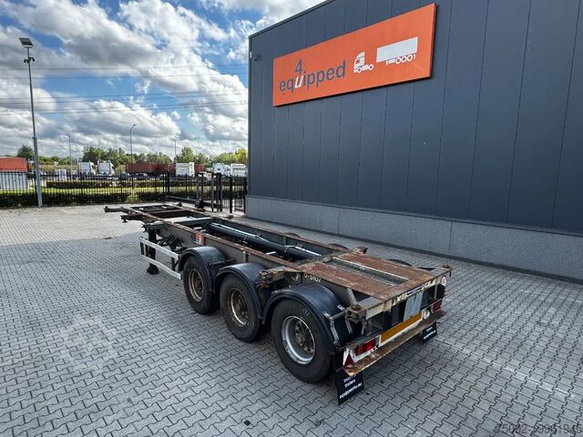 1994 DESOT 20FT/30FT ADR chassis with 5 twistlock arms (20FT center/rear, 30FT), ABS, BPW Eco axles with drum brakes, ADR (FL, AT), 1st axle is a lift axle, 385/65 R22.5 tires (L: 10/8/8mm; R: 13/8/9mm), unladen weight 3,800 kg, max. weight 38,000 kg, Belgian registration