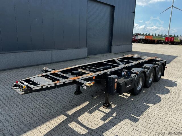 2014 LAG 20FT ADR chassis with ABS/EBS, BPW ECO-PLUS axles with drum brakes, ADR (EXII, EXIII, FL, AT) valid until 01.09.2026, 1x20FT, unladen weight: 3,540 kg, max. total weight: 39,000 kg, 385/65-R22.5 tires (L: 15/17/15 mm; R: 14/16/15 mm), Dutch registration with valid technical inspection (APK) until 01.09.2026.