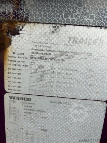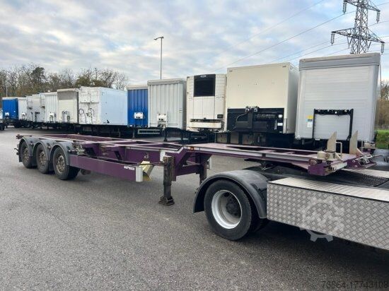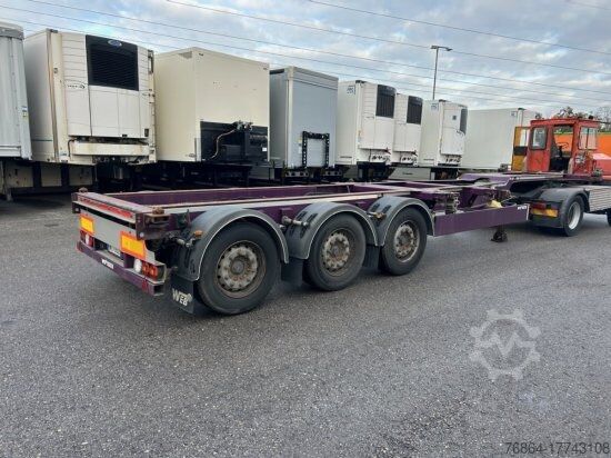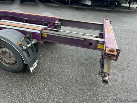 WEB trailer container chassis | rear slider | 2x20 ft, 1x40 ft | 1st axle liftable | SAF axles with disc brakes | Tires: 385/55 R22.5 | Unladen weight: 5,240 kg | 1st and 3rd axle liftable | Austrian vehicle | Subject to error, input, and prior sale.