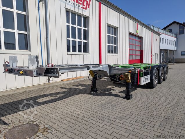 With rear height adjustment in "hot-dip galvanized version" and folding central supports for containers without tunnel