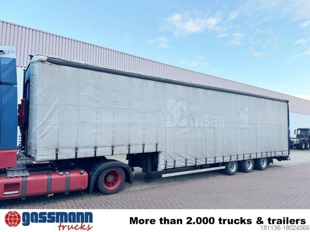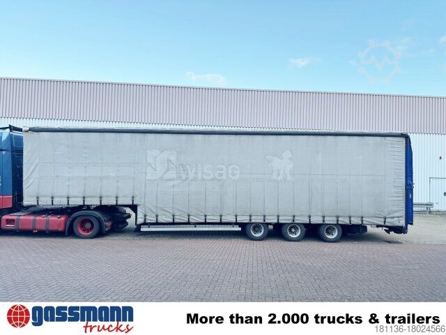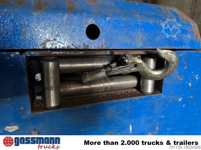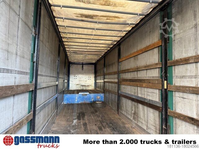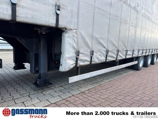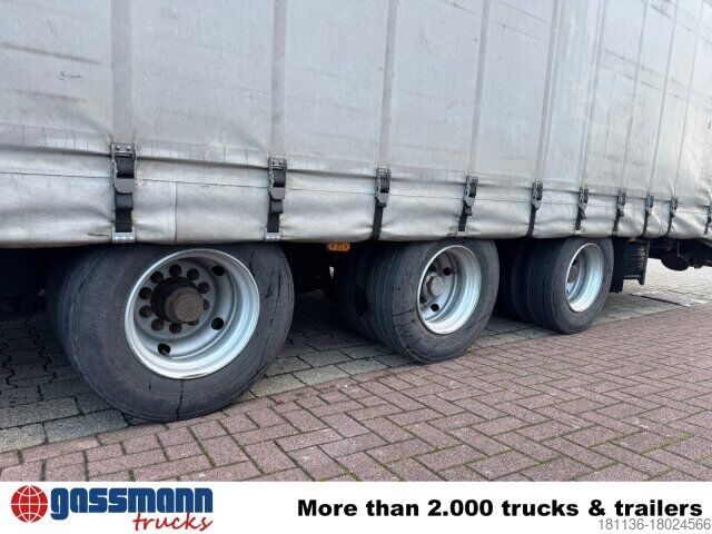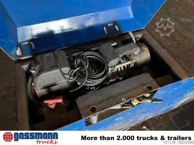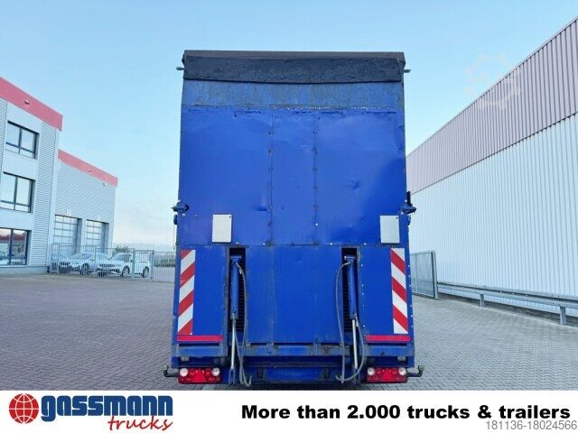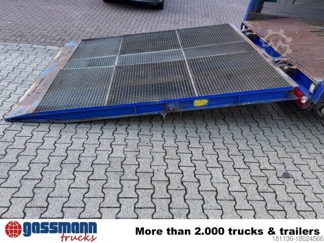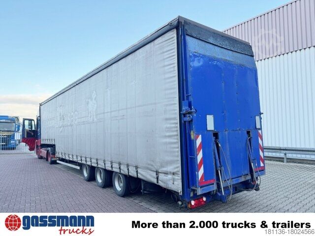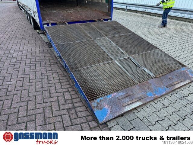 Vehicle location: Bovenden, 3-axles, BPW axles, air suspension, ABS (anti-lock braking system), Edscha, tarpaulin, lashing eyes, hydraulic ramps, rear support, side aluminum undercarriage, fire extinguisher box, supports, twin tires, storage box, cable remote control, cable winch