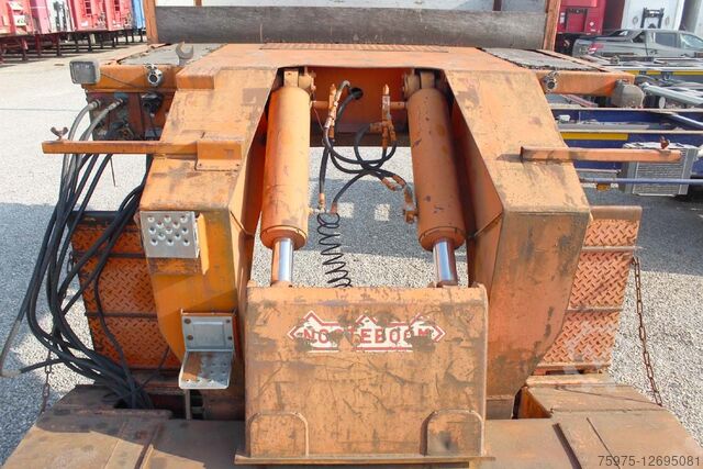 nooteboom cradle trailer, 2 axles with air suspension, ebs, 2 tridec steering axles from fifth wheel and adjustable by linkage, lower part 6.0m long x 50cm high from ground, adjustable and releasable neck, payload capacity up to 47.5 tons, year 1999, INTERDRIVE SRL-PARMA CINCESSIONARY