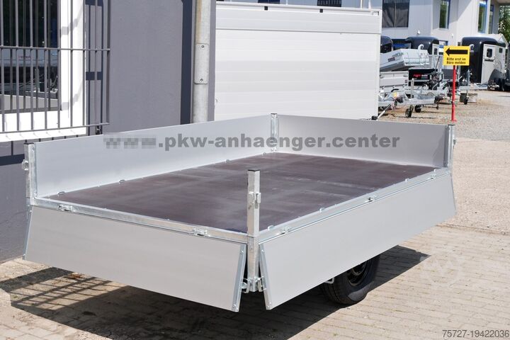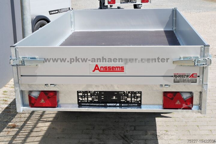 As standard equipment, the unbraked, single-axle Anssems flatbed trailer features aluminum drop sides – all folding and removable, robust eccentric locks, internal lashing eyes, profile rails for accessory installation or load securing, steel frame, jockey wheel, and a V-drawbar.